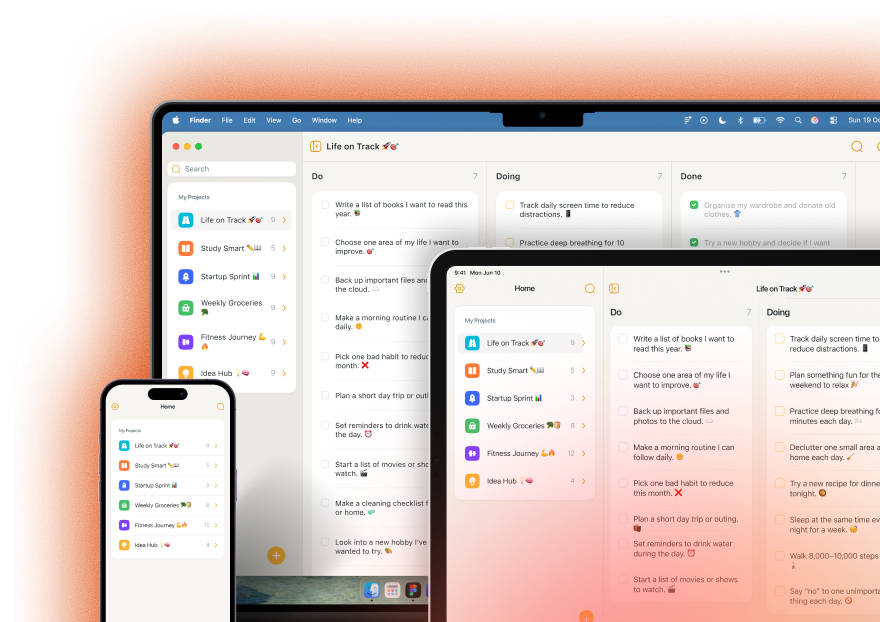 Organize your tasks, stay on schedule, and reach your goals. All from one app built for focus and flow.